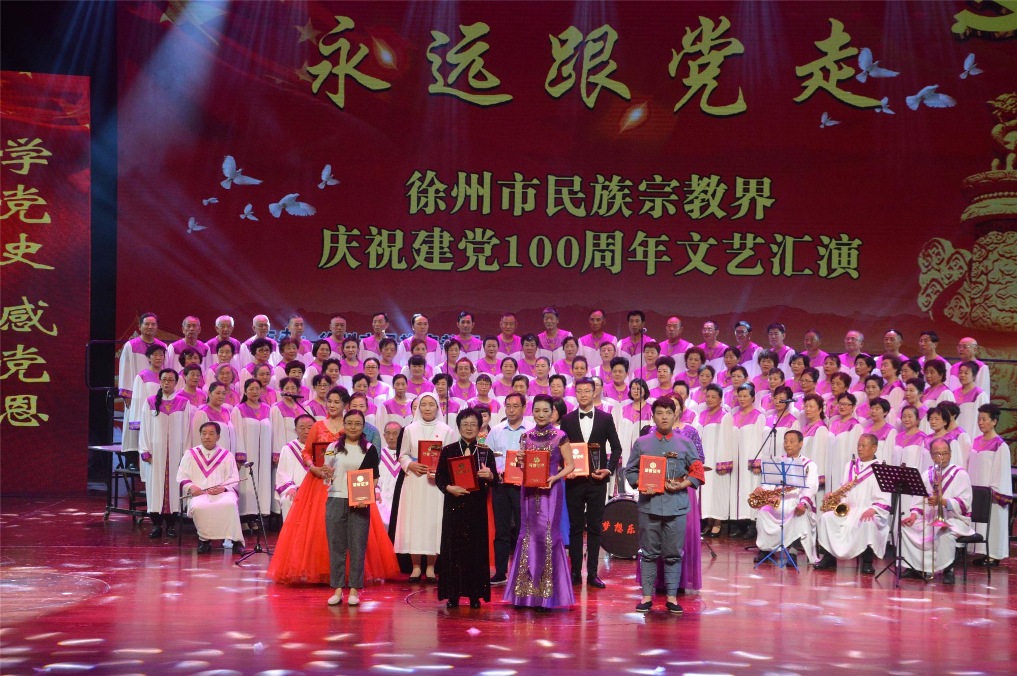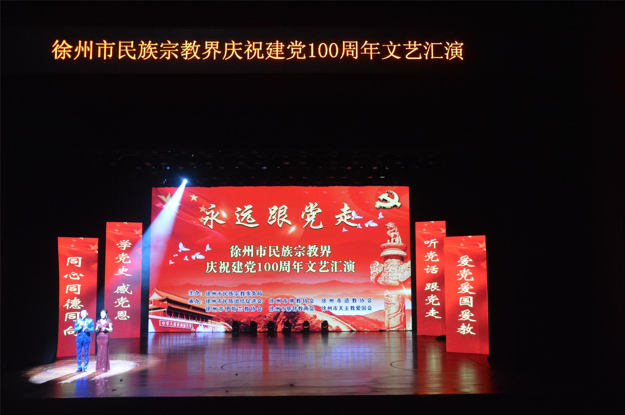 為慶祝建黨100周年,6月4日下午,徐州市民族宗教界以“永遠(yuǎn)跟黨走”為主題,以“愛(ài)黨愛(ài)國(guó)愛(ài)教,同心同德同向”“學(xué)黨史感黨恩,聽(tīng)黨話跟黨走”為主線,在徐州音樂(lè)廳舉行慶祝中國(guó)共產(chǎn)黨建黨100周年文藝匯演。市委常委、委統(tǒng)戰(zhàn)部部長(zhǎng)畢于瑞,市政協(xié)副主席張耀環(huán),市委統(tǒng)戰(zhàn)部常務(wù)副部長(zhǎng)李海峰,市委統(tǒng)戰(zhàn)部副部長(zhǎng)、市民宗局局長(zhǎng)吳爾松等觀看演出。