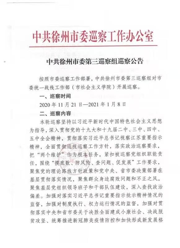當前位置:首頁 > 新聞資訊 > 中共徐州市委第三巡察組巡察公告