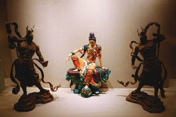 在對話工藝美術(shù)大師訪談節(jié)目中,農(nóng)工黨泉山區(qū)第二支部黨員、徐州市首屆工藝美術(shù)大師、徐州面塑非遺傳承人、傳統(tǒng)彩塑傳承人胡龍介紹自己的成長經(jīng)歷,分享面塑中的繪畫、雕塑、雕刻以及自己用泥塑手法對面塑進(jìn)行改良的技法,表示將致力于深耕中華優(yōu)秀傳統(tǒng)文化沃土,推動(dòng)非遺面塑項(xiàng)目創(chuàng)造性轉(zhuǎn)化和創(chuàng)新性發(fā)展,以面塑為載體講好多黨合作故事。上圖是胡龍(右)和他的經(jīng)典作品《敦煌》。