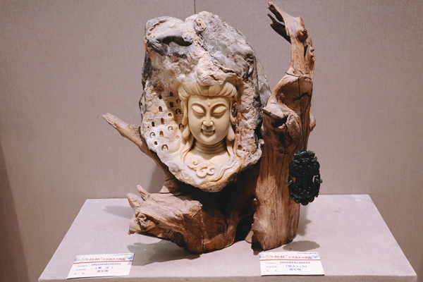 工美展共展出工藝美術(shù)作品454件,價(jià)值超億元,主要由徐州農(nóng)工黨黨員和周邊城市工美藝術(shù)家提供,展品涵蓋玉雕、石雕、泥塑、面塑、蛋雕、剪紙、刺繡、核雕、紫砂刻瓷、鑄鐵鍛打、木雕、根雕、留青竹刻、香包,烙畫、絨花、戧刻等知名品類。展品古樸莊重、形態(tài)典雅、色澤光潤,具有很強(qiáng)的審美價(jià)值、文化底蘊(yùn)和時(shí)代氣息。